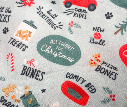 I purchased this for my dog Max since he is very much a 'short stack' and it looks absolutely adorable on him. A size xs is easy to slide on over his head and if I want it to be a little tighter I can make a little knot in the back. These bandanas are always made with love and last a long time!