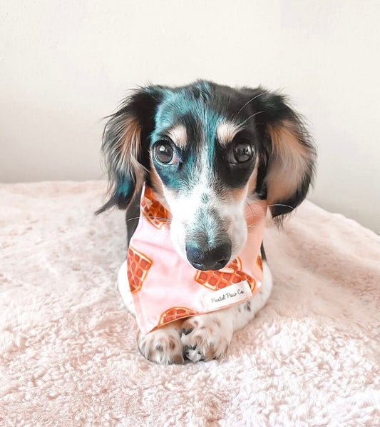 The snap makes the bandannas so easy to put on and take off. My pup always looks festive thanks to Pastel Paw!