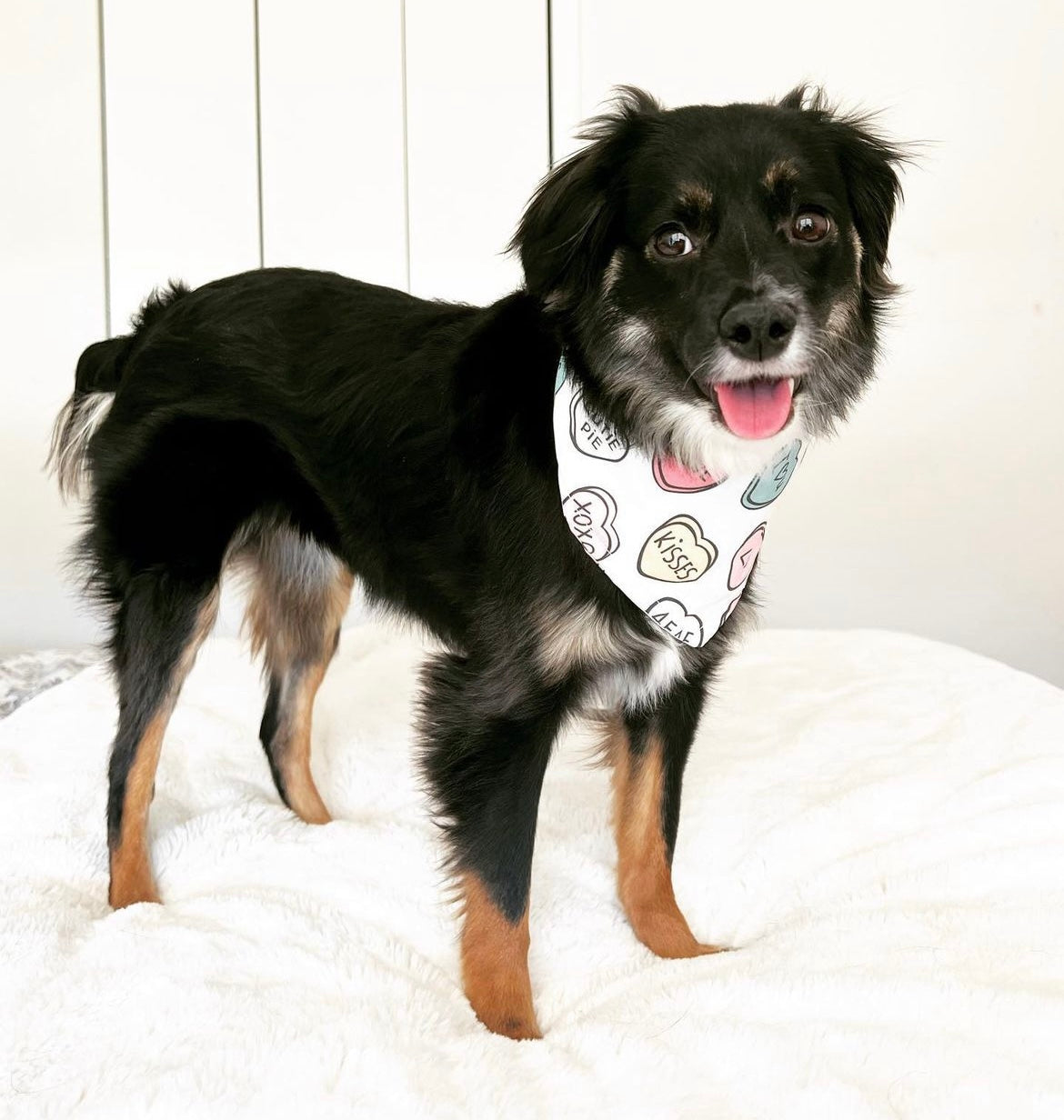 Biscotti was so excited when her bandana arrived from your Kissing Booth Collection. The bandana was beautifully packaged, and the treat was a very nice surprise.